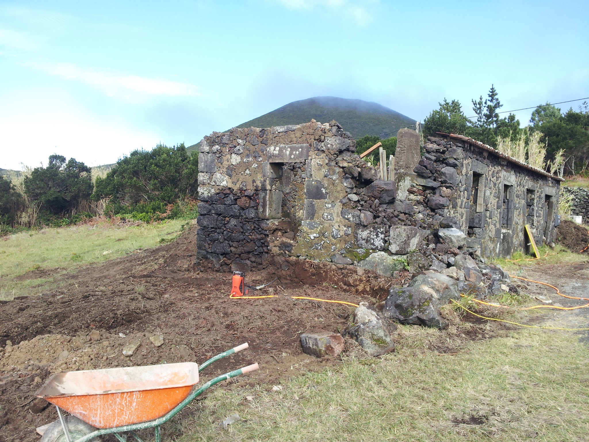 Heute morgen habe ich als erstes einen Bagger bestellt, der auch eine halbe Stunde später hier war. Damit wurde dann der Rest des Hauses, die Rückseite, freigegraben und die Fläche vor dem Haus für das Fundament des Anbaus vorbereitet. Nach 2 Stunden war alles erledigt, für 60 Euro.